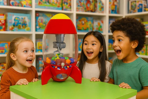 Diseñada para atrapar muñecos alienígenas con la garra controlada por palanca