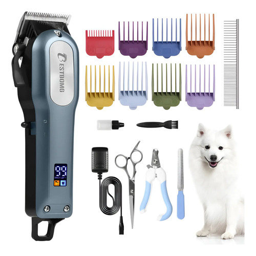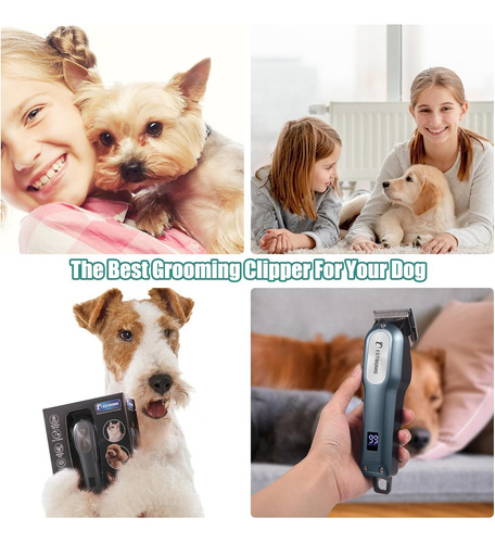 Cuchillas de metal de acero inoxidable. El kit de aseo para perros está especialmente diseñado para cabello grueso. En comparación con la cuchilla de cerámica, la cuchilla es más fuerte y se daña menos fácilmente, la vida útil es más larga, y se puede moler manualmente y usar de nuevo, el motor giratorio de tres velocidades de 6500 rpm ofrece el rendimiento que los profesionales demandan