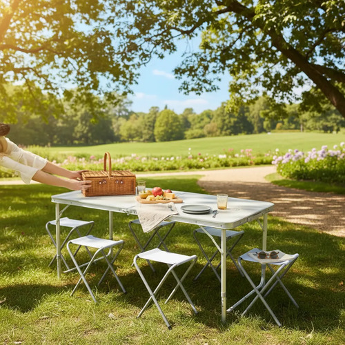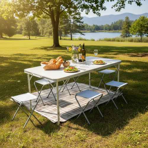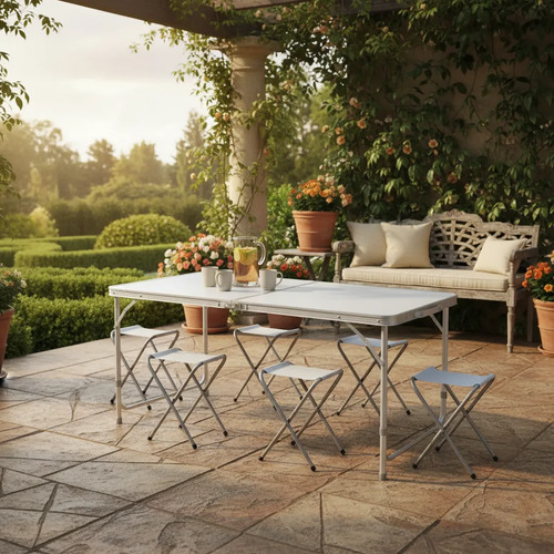 Fabricada en plástico resistente, esta mesa garantiza durabilidad y estabilidad en diversas superficies. Con unas dimensiones de 120 cm de largo, 60 cm de ancho y 55 cm de altura, proporciona un amplio espacio para tus comidas o actividades al aire libre. Su diseño ligero, con un peso de 9727 g, facilita su manejo, permitiendo que la lleves a cualquier lugar sin esfuerzo.