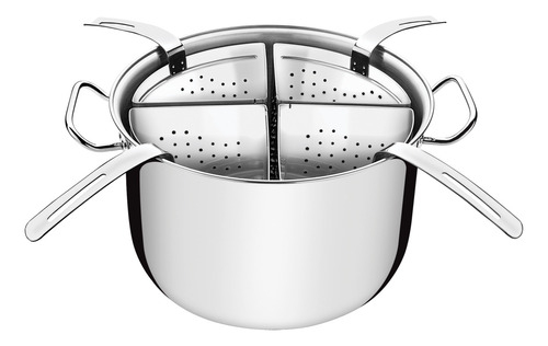 Permite cocinar simultaneamente hasta cuatro tipos de pasta sin mezclar sabores.