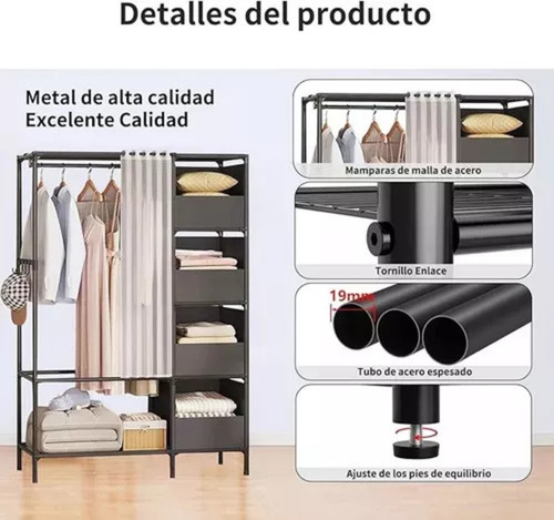 Organizador Multifuncional Ropero Con Perchero Y Cajones