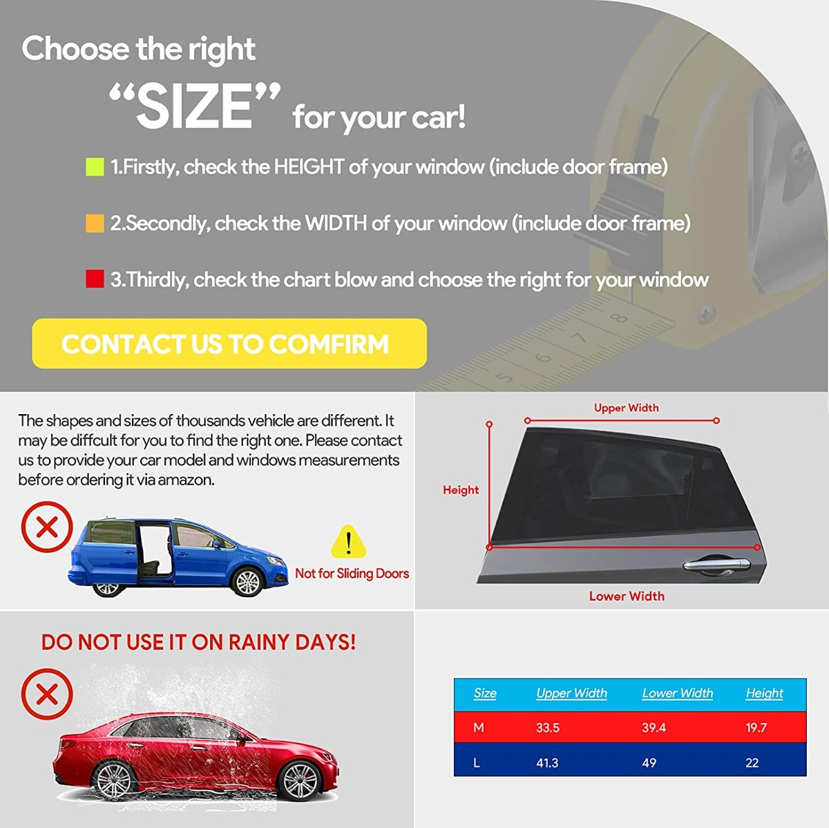 Se adapta a la mayoría de los coches Nuestros parasoles para ventana de coche se adaptan a la mayoría de los coches, sedanes, SUV, MPV, Hatchbacks y furgonetas con ventanas curadas/rectangulares. (solo ventana trasera). Asegúrate de medir tus ventanas, incluyendo el marco de la puerta antes de comprar.