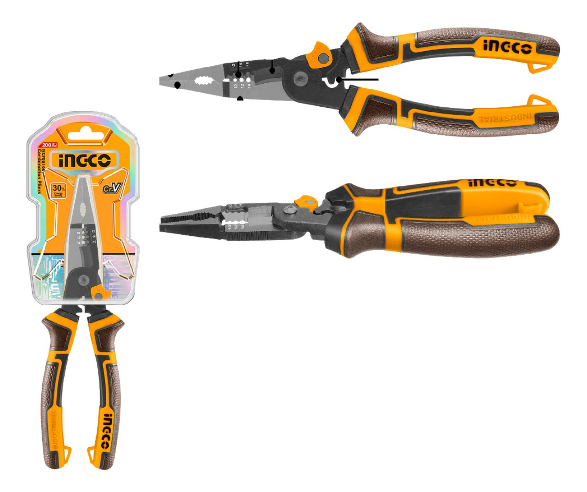 / Pinza Punta Fina 8 200mm Cr-v Mult 6 En 1 Ingco Hmflnp28200