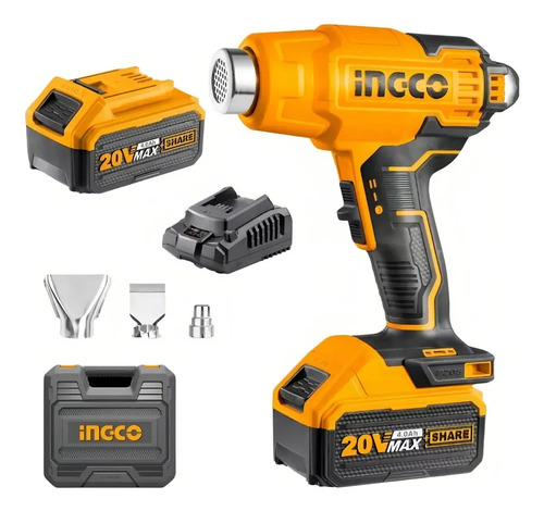 Pistola De Calor Inalambrica Bat + Cargador Ingco Hgli20025 Color Naranja