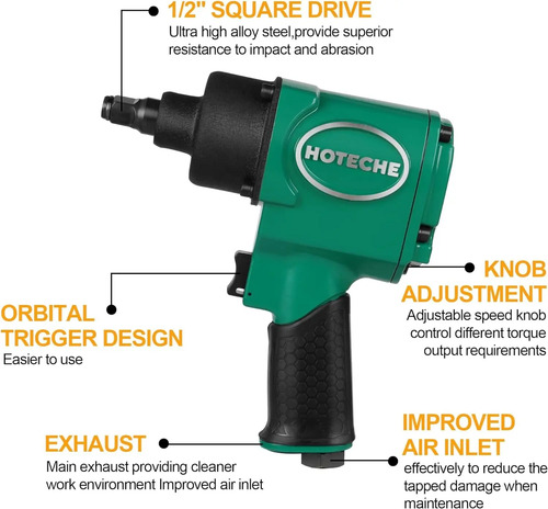 Duradera: construida para soportar un uso intensivo, la llave de impacto de aire AG830213 de Hoteche es una inversión duradera que puede manejar los rigores de trabajos difíciles
