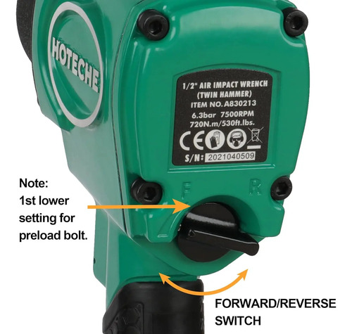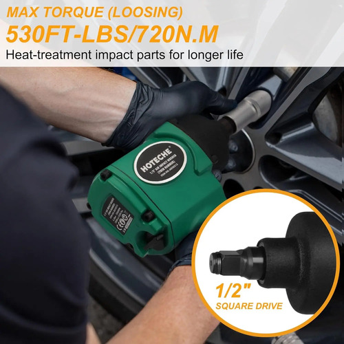 Alto par de torsión: genere hasta 530 pies-libras de torque con la llave de impacto de aire de 1/2 pulgada AG830213 de Hoteche, perfecta para tareas pesadas y apriete y aflojamiento de sujetadores