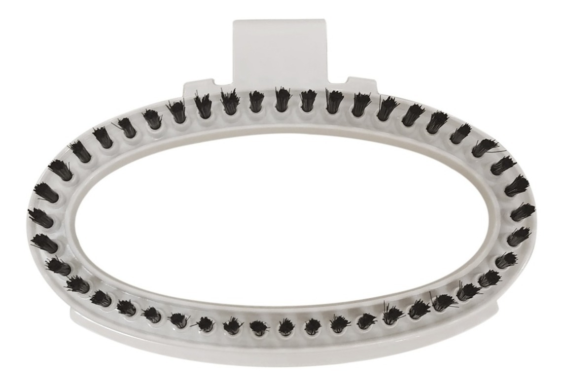 Guante protector, pinzas, cepillo y superficie de apoyo para planchado vertical