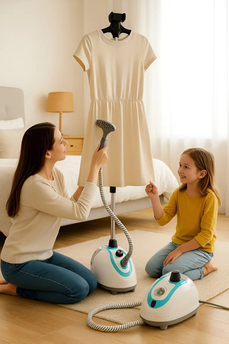 Con función para eliminar arrugas fácilmente en cortinas, trajes y prendas colgadas sin necesidad de tabla.