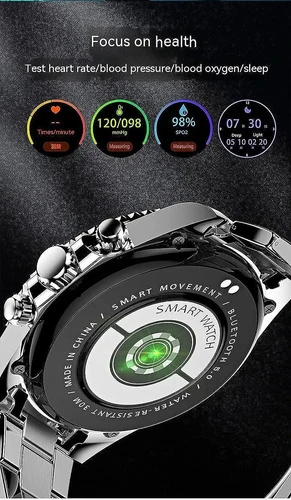 Reloj inteligente de alta calidad: pantalla táctil completa de 1.3 pulgadas, artesanía precisa de acero inoxidable, ofrece una pantalla clara y delicada, correa de acero inoxidable, cómodo de llevar. Se pueden cambiar múltiples diales, también admite la esfera personalizada.