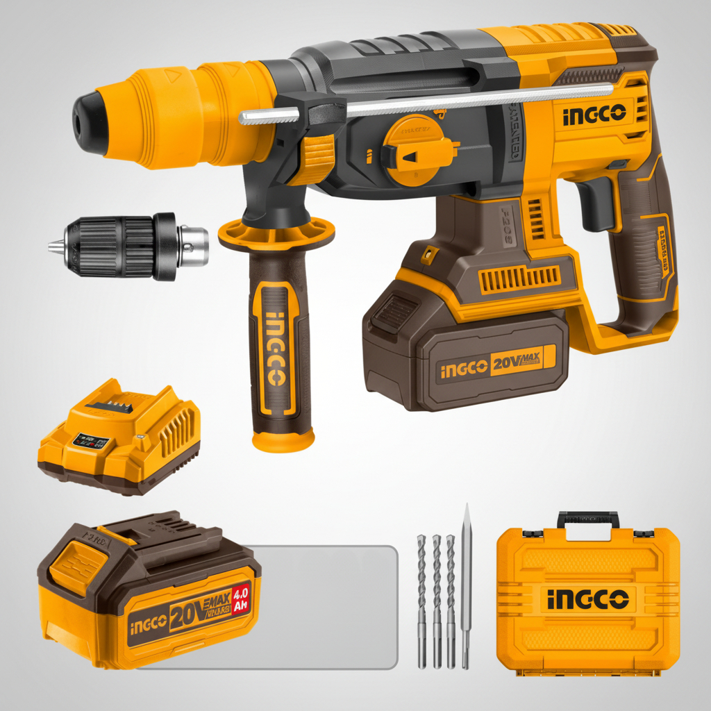 ROTOMARTILLO 20V P20S 26MM 4 FUNCIONES C ADAPTADOR MANDRI RÁPIDO BRUSHLESS C 2 BAT X 4AH + CARG + VALIJA