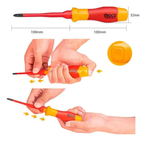 El Set Aislado de 12 Destornilladores Ingco HKISD1201 es la herramienta ideal para profesionales y aficionados al bricolaje que buscan seguridad y calidad. Este juego de destornilladores intercambiables está diseñado para ofrecer un rendimiento excepcional, con una capacidad de aislamiento de hasta 1000 V, garantizando la protección del usuario durante su uso. Cada destornillador está fabricado con material S2, conocido por su durabilidad y resistencia al desgaste. El set incluye una variedad de puntas, como SL y PH, para adaptarse a diferentes necesidades de atornillado. Además, cuenta con un mango intercambiable que facilita el cambio de puntas y un probador de voltaje de 3.0x70mm, asegurando que siempre estés preparado. Presentado en una práctica bolsa de lona, este set es perfecto para mantener tus herramientas organizadas y accesibles. Con la marca Ingco, puedes confiar en la calidad y el rendimiento de cada pieza.