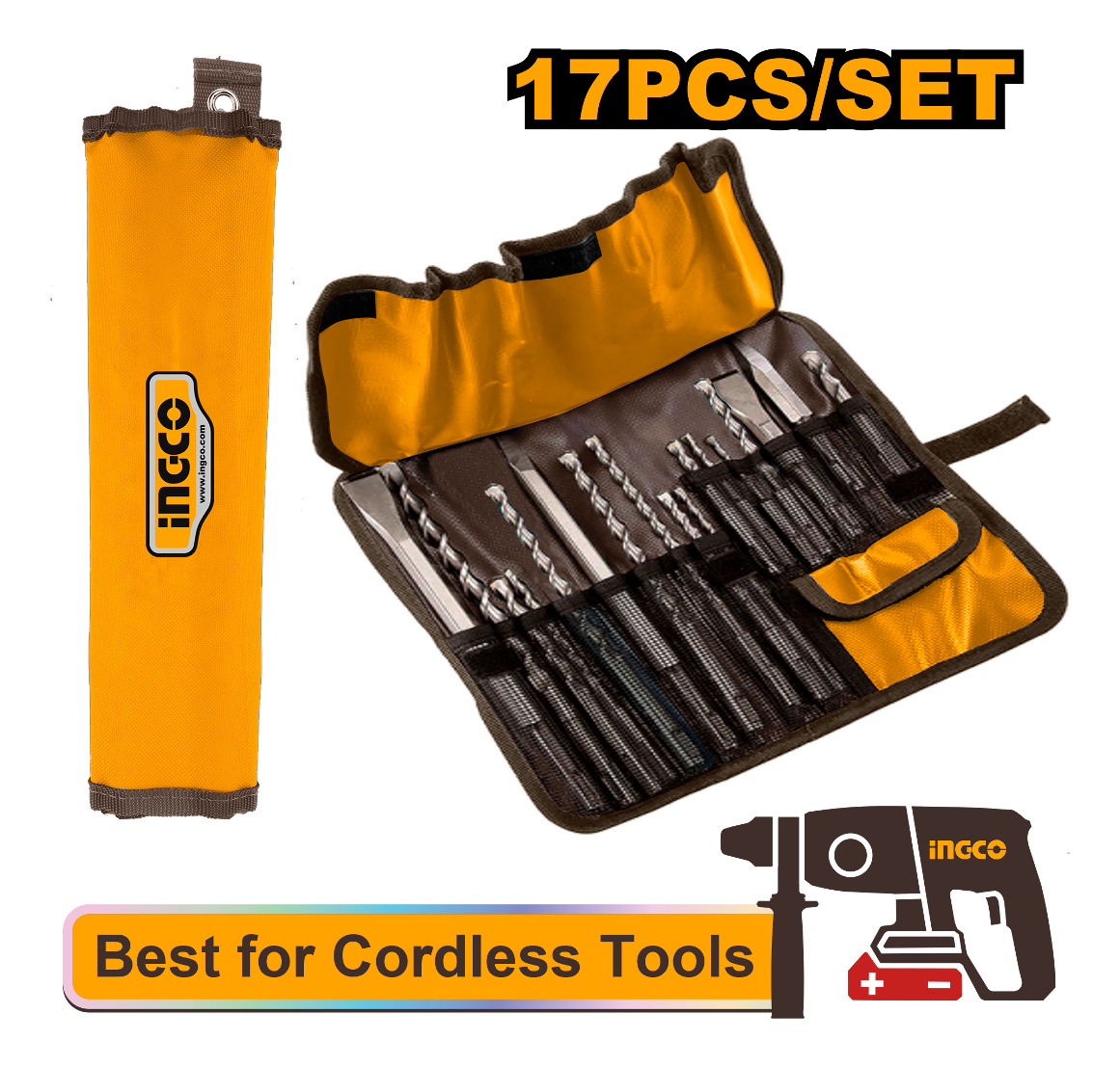 Juego de 17 piezas de brocas y cinceles SDS plus para taladro percutor