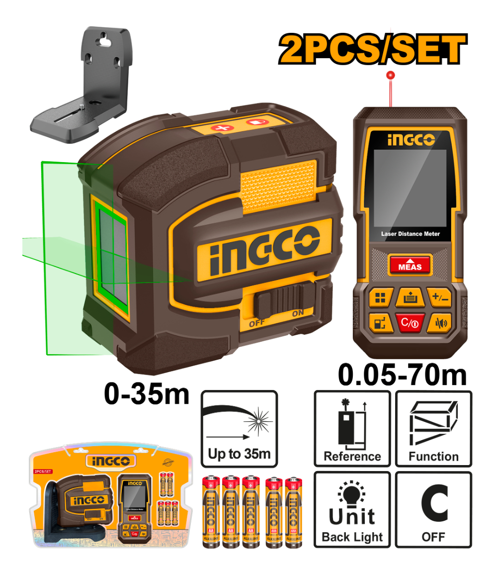 Set Medición Nivel Láser Verde 35mts + Medidor De Distancia