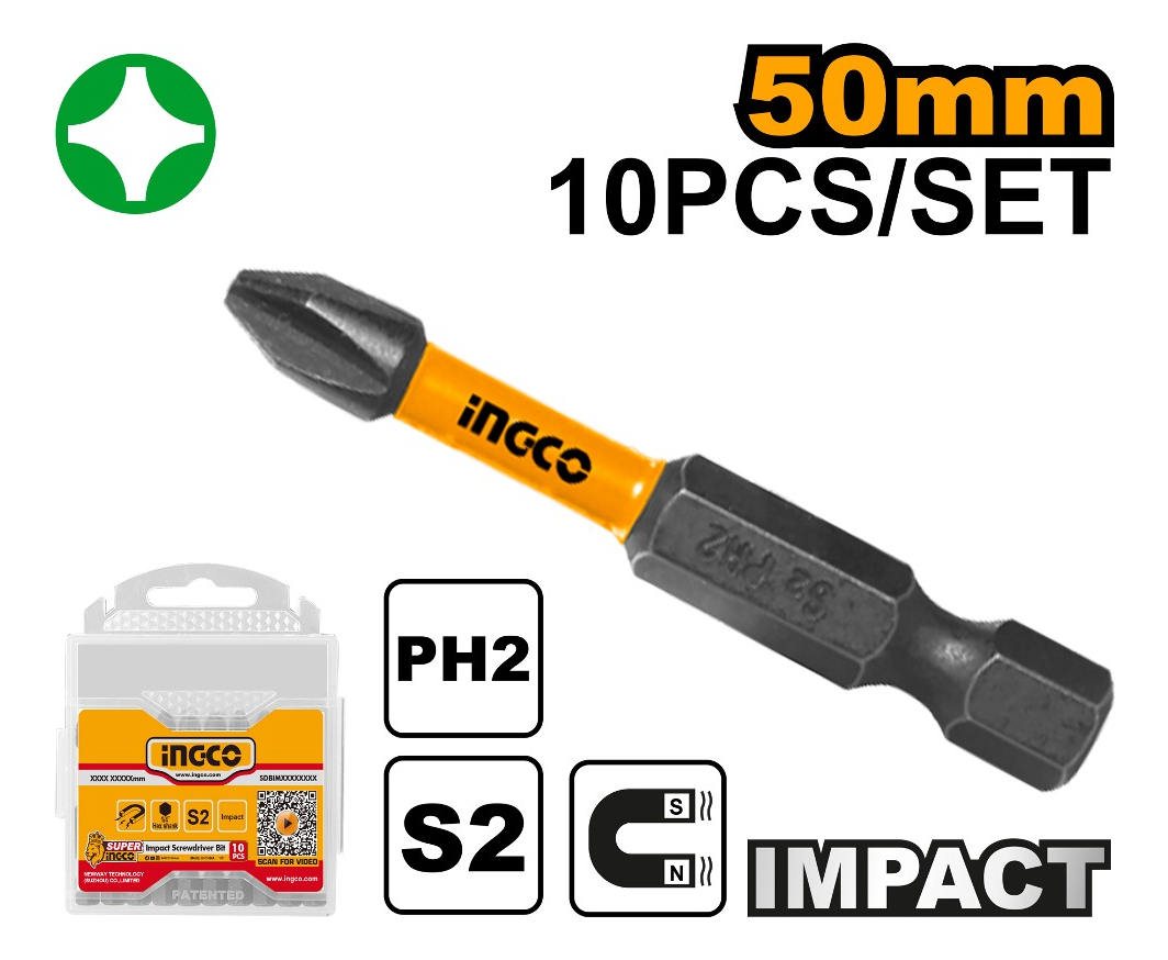 Set Puntas Impacto Ph2 50mm 10pcs Ingco Sdbim11ph223