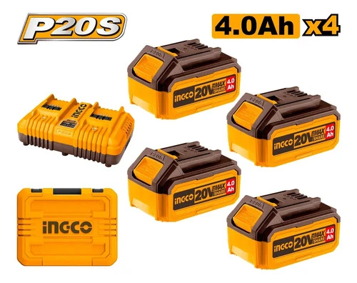 SET X 4 BATERIAS 4 AMP 20V + CARGADOR + VALIJA