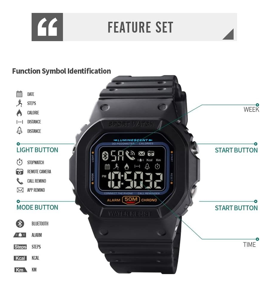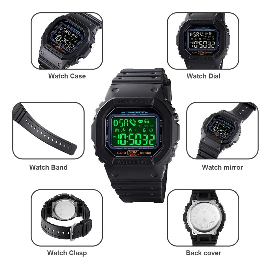Reloj multifunción: reloj despertador, luz nocturna, podómetro, kilometraje de ejercicio, cálculo de calorías, segundo temporizador de funcionamiento, función de recordatorio, almacenamiento de datos, recordatorio de llamadas, disparo de control remoto, función Bluetooth, resistente al agua hasta 164.0 ft, a prueba de golpes, reloj de pulsera para niños. Cumple todas tus fantasías sobre relojes.