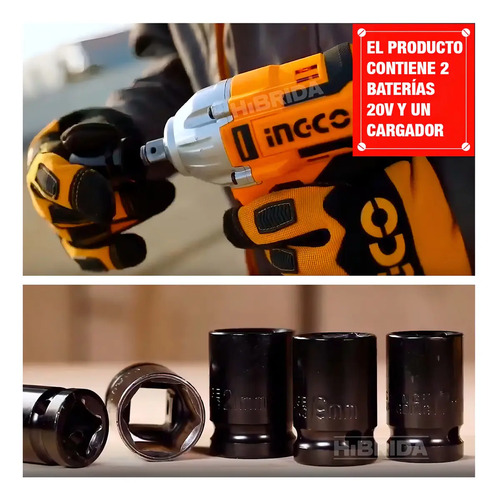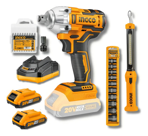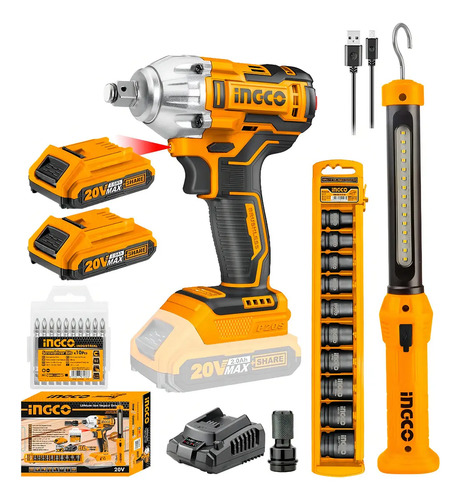 Llave De Impacto Brushless 1/2 + Lámpara + Juego Dados Color Amarillo