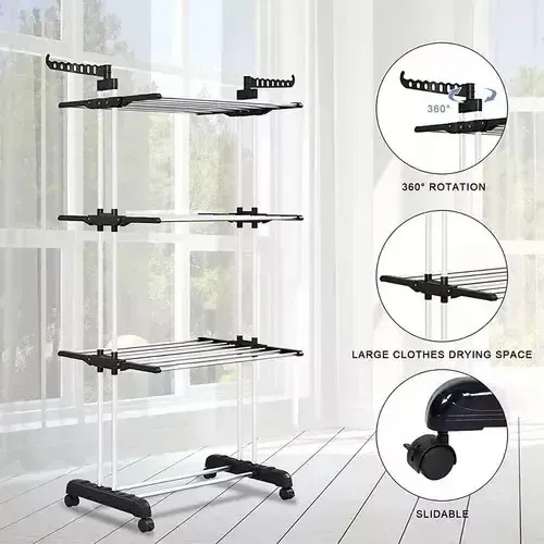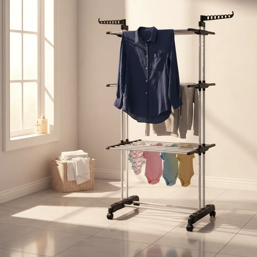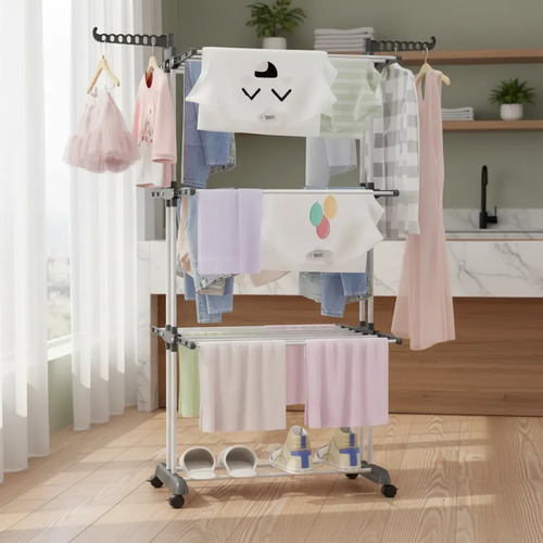 TENDEDERO VERTICAL CON RUEDAS PLEGABLE 3 NIVELES
