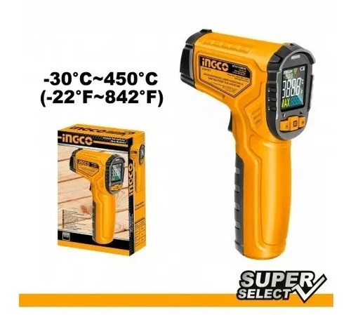Este termómetro industrial de alta calidad tiene un rango de temperatura de -30°C a 450°C (-22°F a 842°F). Cuenta con una pantalla de visualización a color para una lectura fácil y rápida. Su relación de distancia a tamaño del punto es de 12:1, lo que permite mediciones precisas a distancia. Tiene un tiempo de respuesta de menos de 0.5 segundos, lo que significa que obtendrá resultados casi instantáneos. Además, cuenta con una función de apagado automático para ahorrar energía y prolongar la vida útil de la batería. Incluye una luz de fondo para facilitar la lectura en condiciones de poca luz. Este termómetro está diseñado para uso industrial y no es adecuado para uso humano. Viene empaquetado en una caja de color para una mayor protección durante el transporte.