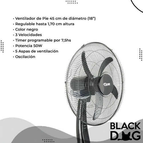 Ventilador De Pie Control Remoto Tem 50w Hasta 170cm Timer Color De La Estructura Negro Color De Las Aspas Negro Plástico 5